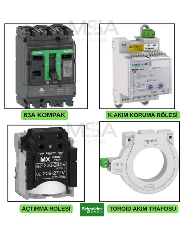 63A TOROID HALKALI AÇTIRMA BOBİNLİ AÇTIRMA RÖLELİ KOMPAK ŞALTER SCHNEİDER
